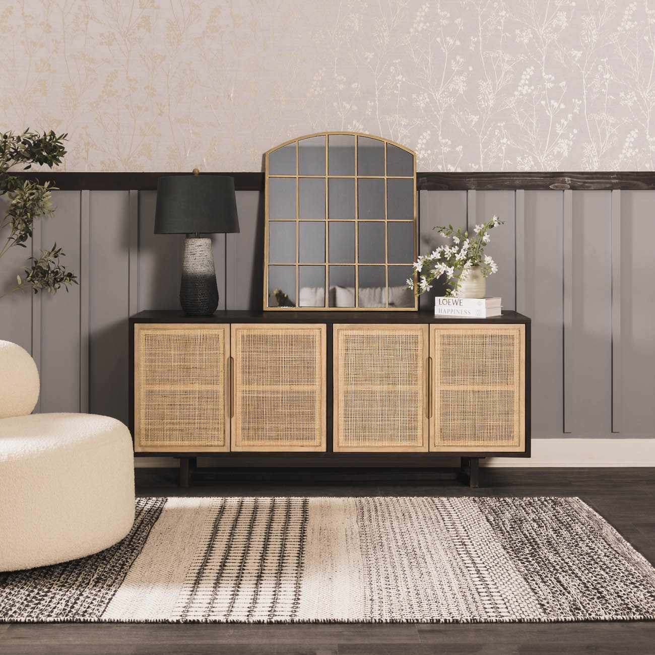 Perfectly balanced between rustic and refined, Dingras works beautifully in living rooms, bedrooms, or cozy corners where texture adds warmth without visual weight. The combination of natural fibers and soft color makes it especially suited for coastal, cottage, or relaxed traditional interiors. A three-way switch allows you to adjust the light from ambient to functional with ease.